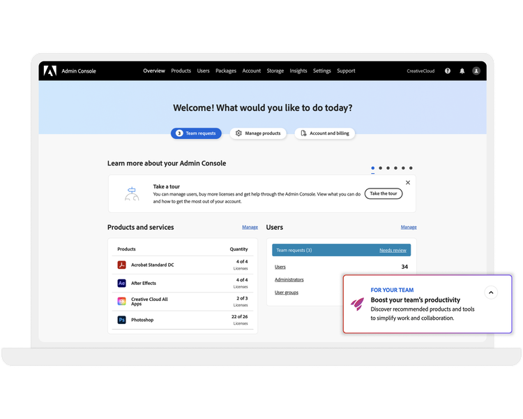 Assign and reassign licenses for your business from a centralized Admin Console. Plus, simplify billing for your company.